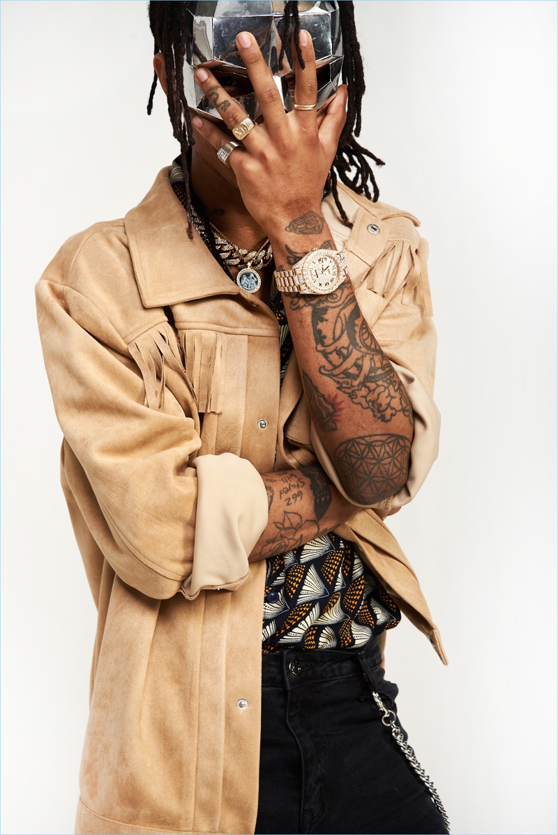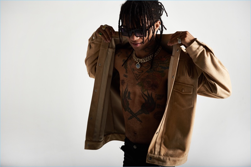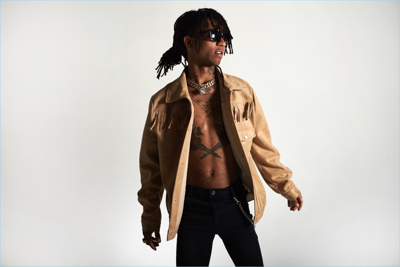 Swae Lee rocks a buffalo check print jacket and ripped jeans for boohooMAN's fall-winter 2017 campaign.Rae Sremmurd fronts boohooMAN's fall-winter 2017 campaign.boohooMAN enlists Swae Lee to star in its fall-winter 2017 campaign.All smiles, Slim Jxmmi appears in boohooMAN's fall-winter 2017 campaign.A cool vision, Slim Jxmmi fronts boohooMAN's fall-winter 2017 campaign.